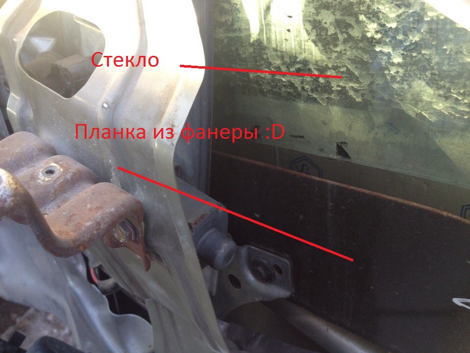 Всем привет! Столкнулся с такой проблемой, как "тугое" открывание/закрывание передних стекол. Сняв обшиву, я увидел странную картину: на сам стеклоподъемник крепится планка из фанеры, а на нее стекло. Так и должно быть? На задних подобных гамыр не обнаружил.