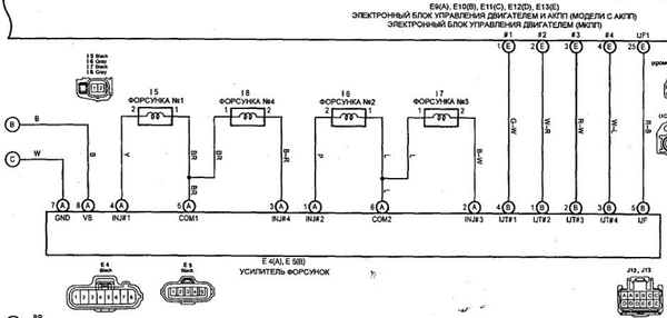 Может, в том чудном мануале есть и номинальное сопротивление катушек форсунки? А то везде разные значения - где-то пишут, что 2,55..2,85 Ом - норма при +20 град С, где-то - что 4 Ома..