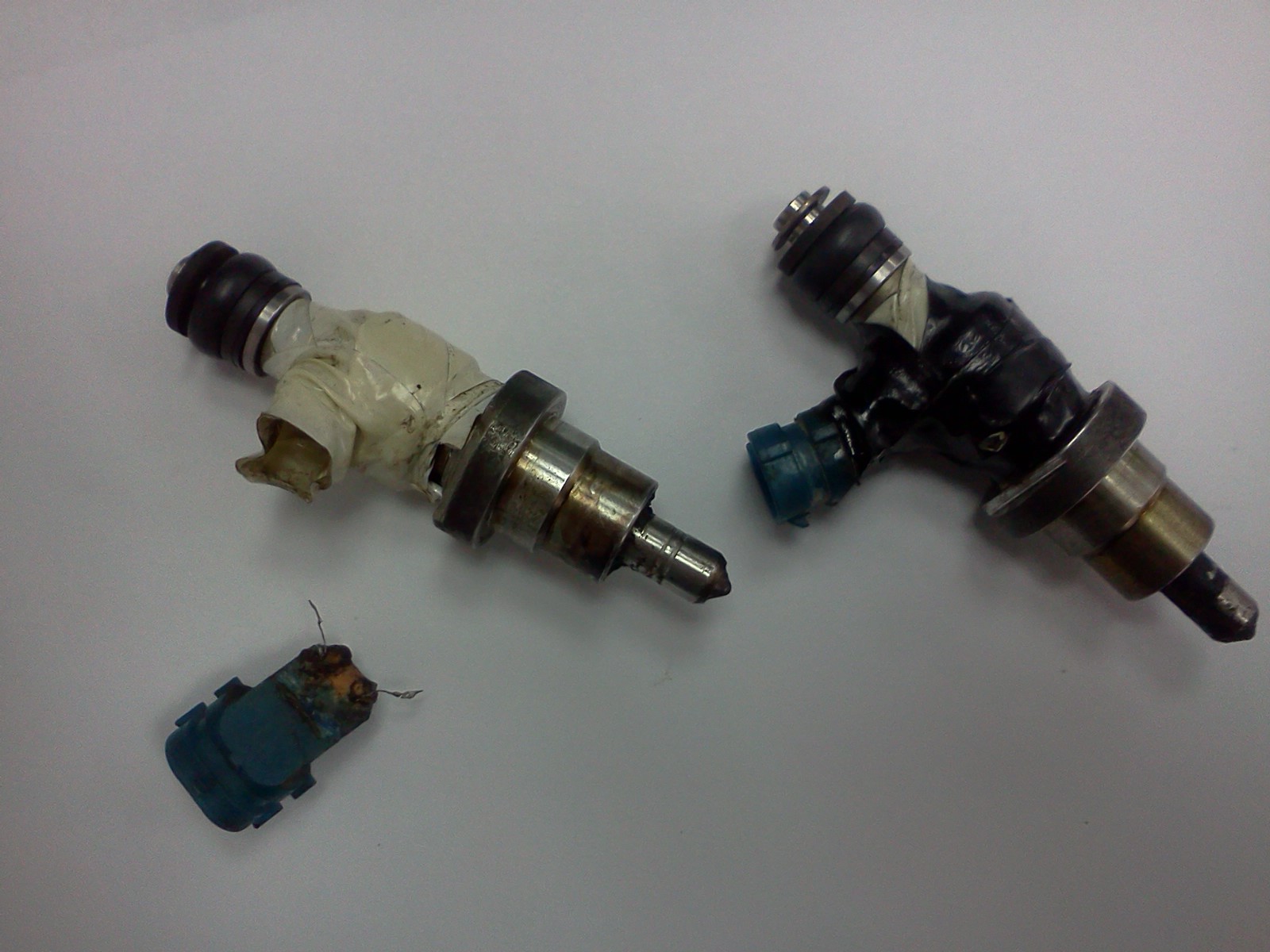 Это все предыдущие мастера - сказали мне, что контакты "сломались, но, мол, волноваться не нужно - мы отдали форсунки в ремонт и вам это ничего не будет стоить".. А еще я вчера спрашивал у мастера того "чудо-сервиса" - какие у меня форсунки (цвет)? Он задумался и сказал - черные! Но на фото явно видно, что они - синие :)