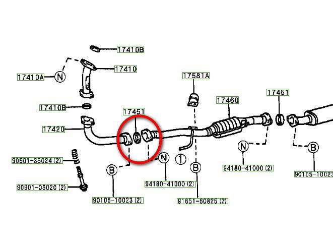 Можно расчленить по детали 17410. Это условно равноценно, выхлопную отодвинуть можно и мешать не будет, в отличие от вашей задумки.