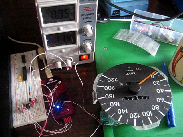 Для друга-кариновода проверял спидометр, решил выложить видео и фото. Может быть кому-нибудь будет интересно. Вобщем-то ничего особенного: сформировали сигнал нужной частоты амплитудой 12 В и подали его в модуль.