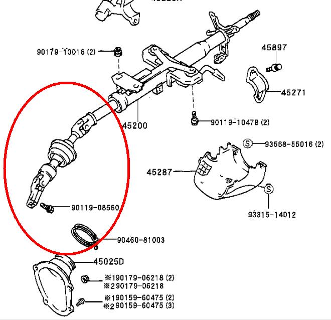 Экзист выдает мне следующую конструкцию, где указан каталожный номер рулевого вала. А мне я как понял надо поменять то, что обведено красным цветом.