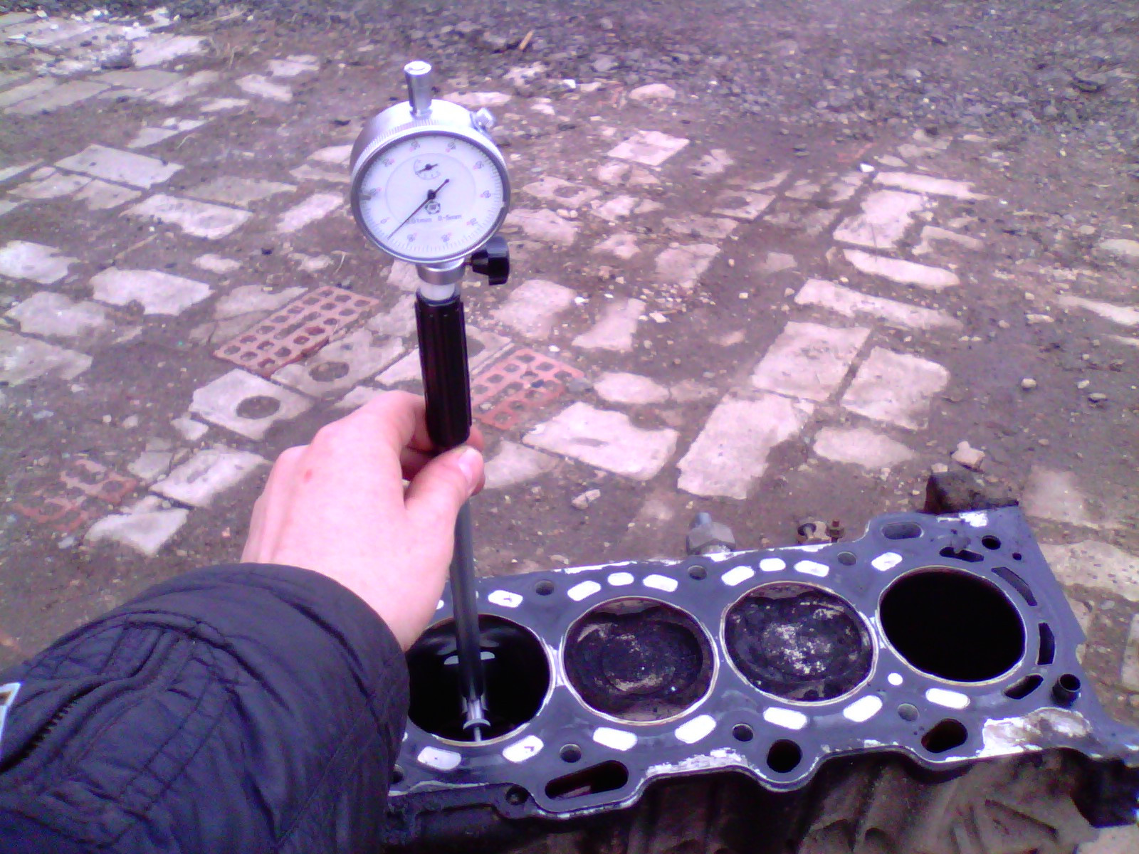Измерения показали износ до 10 соток - много, но терпимо. Допустимый зазор поршень-цилиндр - 15 соток. Самый изношеный цилиндр - 1-ый. Это и понятно: масло и антифриз поступают со стороны 4-го цилиндра, т.ч. первый - "самый жаркий".