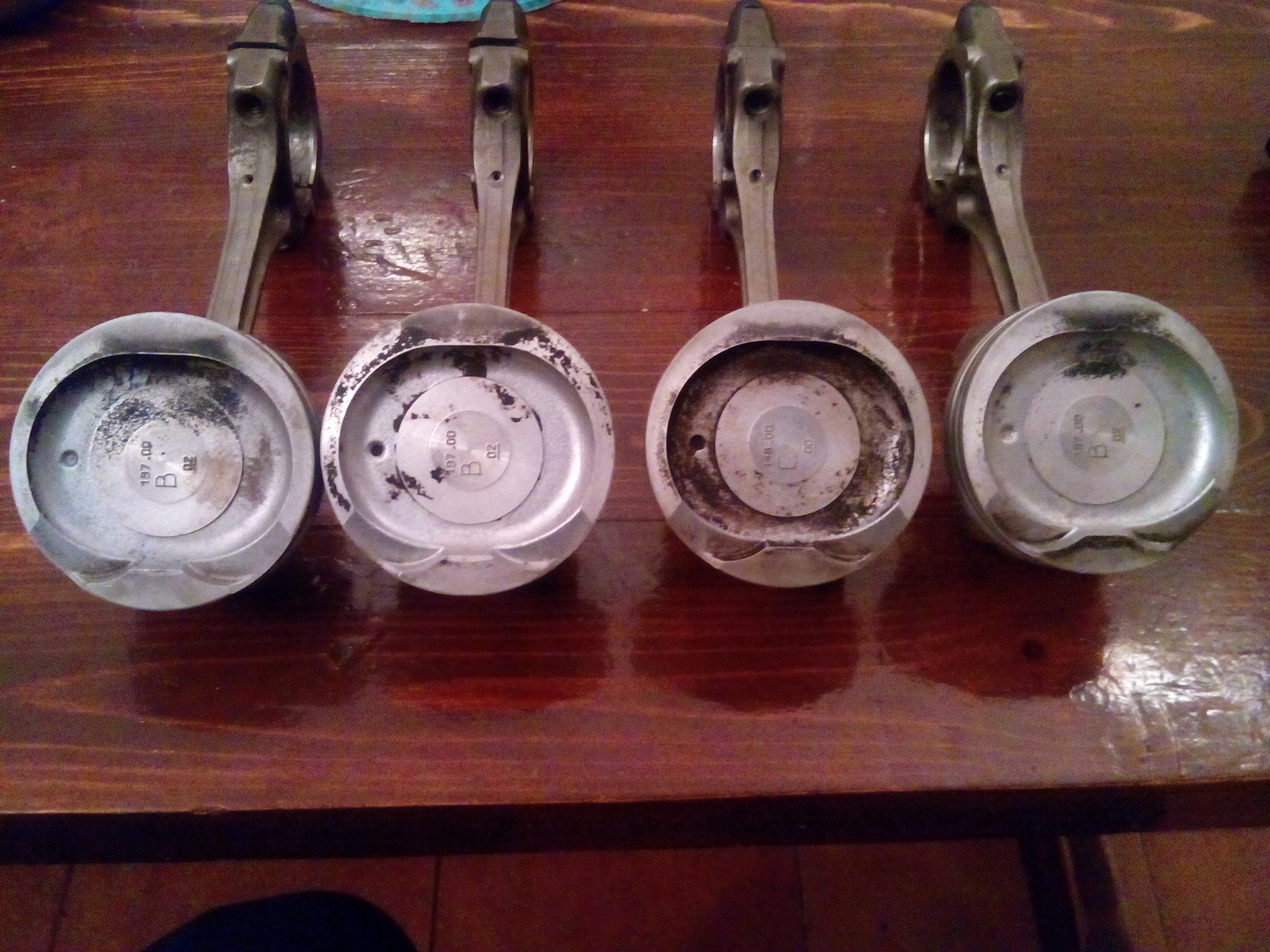 Как и полагается для 1ZZ, отверстия в поршнях были забиты наглухо. После отмывки все выглядит так: