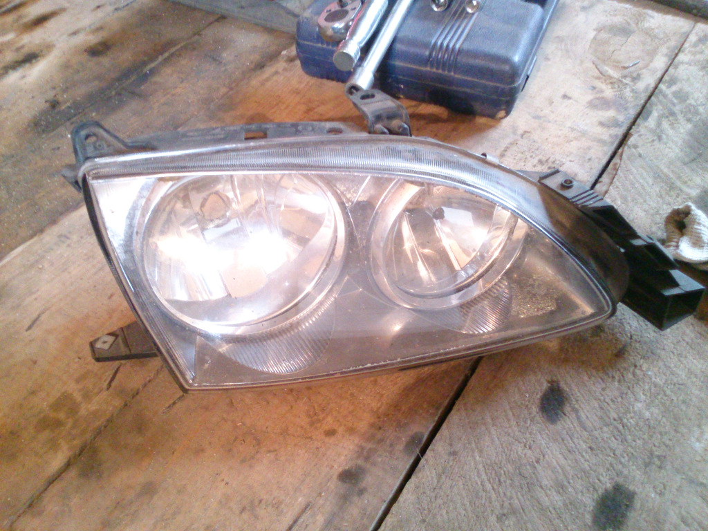 2. Фара рестайл, оригинал, правая. Стекло целое, но не в идеале, отражатель местами облупился. Корпус целый, механизм регулировки работает. 1000 руб.