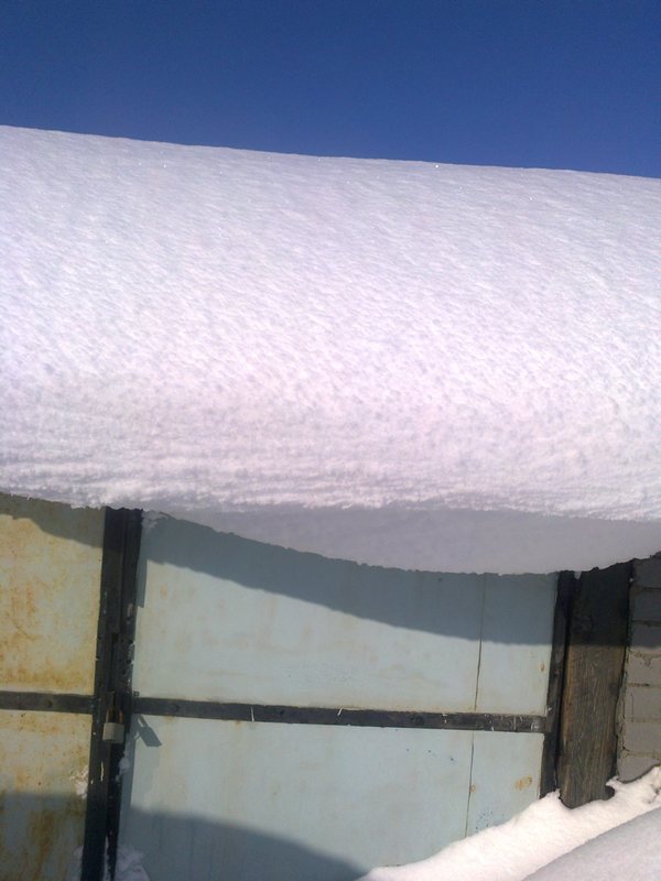 А ведь уже таять начинало потихоньку. И вот "весна" настоящая пришла. Всего лишь одна ночь. А во втором гараже все вымело до бетона.