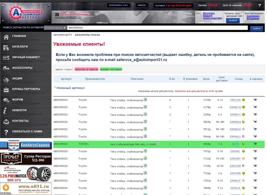 Ну.. тоже ничего так ценник 6 с хвостиком касых :sad: за какой-то линк стабилизатора. По моей учетке цена переднего линка 4800 и доставка 30 дней, либо 18 штукарей и доставка 14 дней.