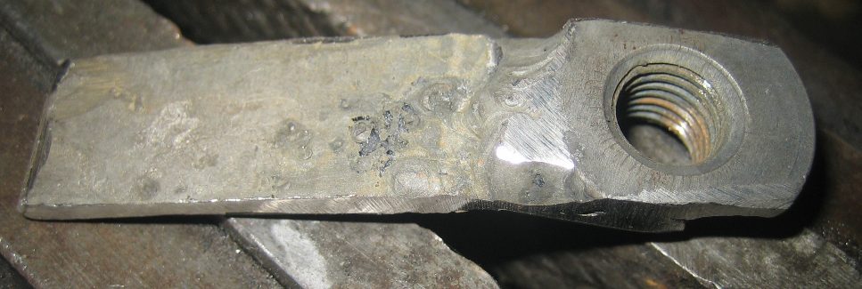 Вварной гайки не было под левым нижним болтом подушки (см. фото выше). Рядом с ним виден болт поменьше - это как раз тот самый болт, который крепит хвост "вварной гайки". Все держится крепко и, как показал опыт, за полгода нахождения в сырых условиях, изготовленная конструкция благодаря обработке кислотой даже не собралась ржаветь. Так была решена первая проблема.