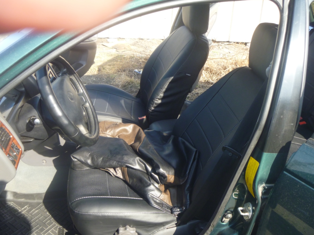 Вы неправильно натянули верхние чехлы передних сидений. Передние боковые эйрбэги, обычно, расположены ближе к стойкам, а у Вас отверстия для них сейчас расположены в сторону водителя у пассажирского и в сторону пассажира у водительского.