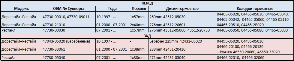 Я так понял из каталогов что до 07.2001 шли двухпошневые тормоза на 3с-фе.