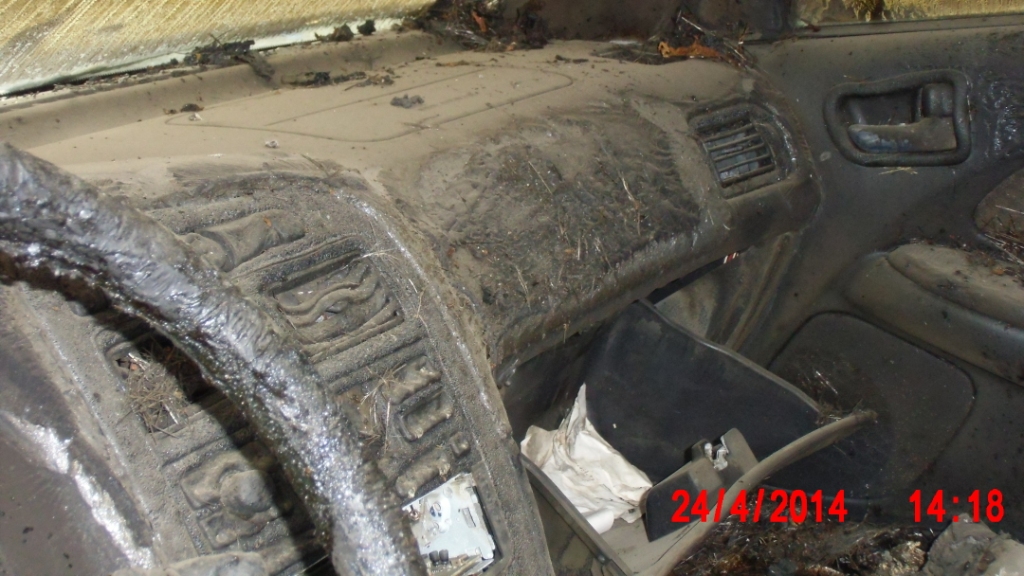Комментарий к файлу: Изнутри обшивка на задней двери расплавилась, на передней не сильно оплавилась. Железо не пострадало